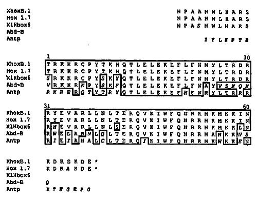 Fig. 2. Homeodomain and flanking sequence comparison. XhoxB.l is