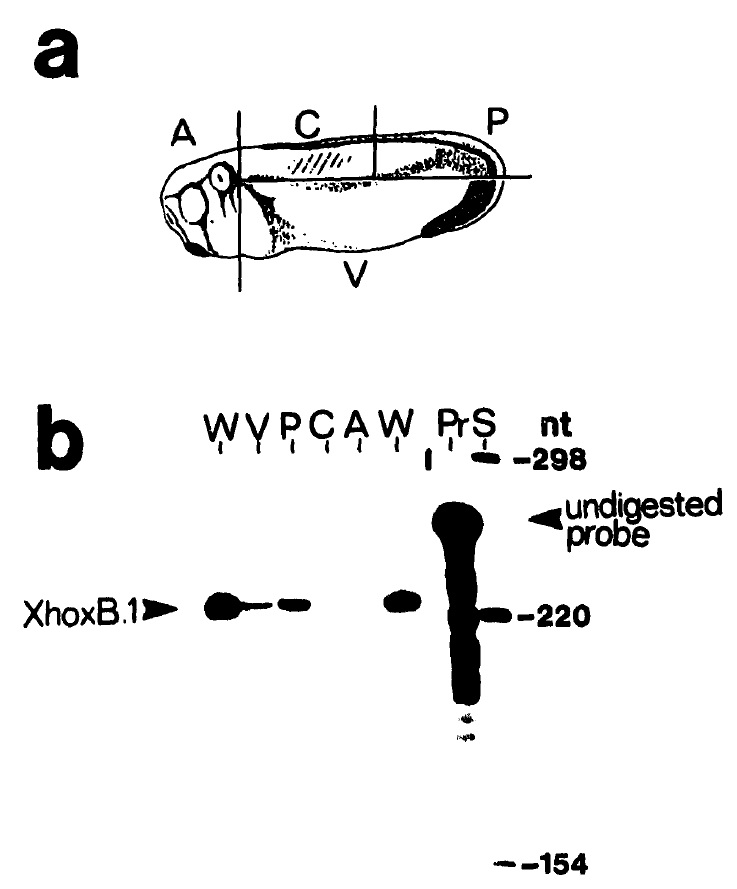 embryo dissection scheme used. (Panel b) RNase protection analysis was
