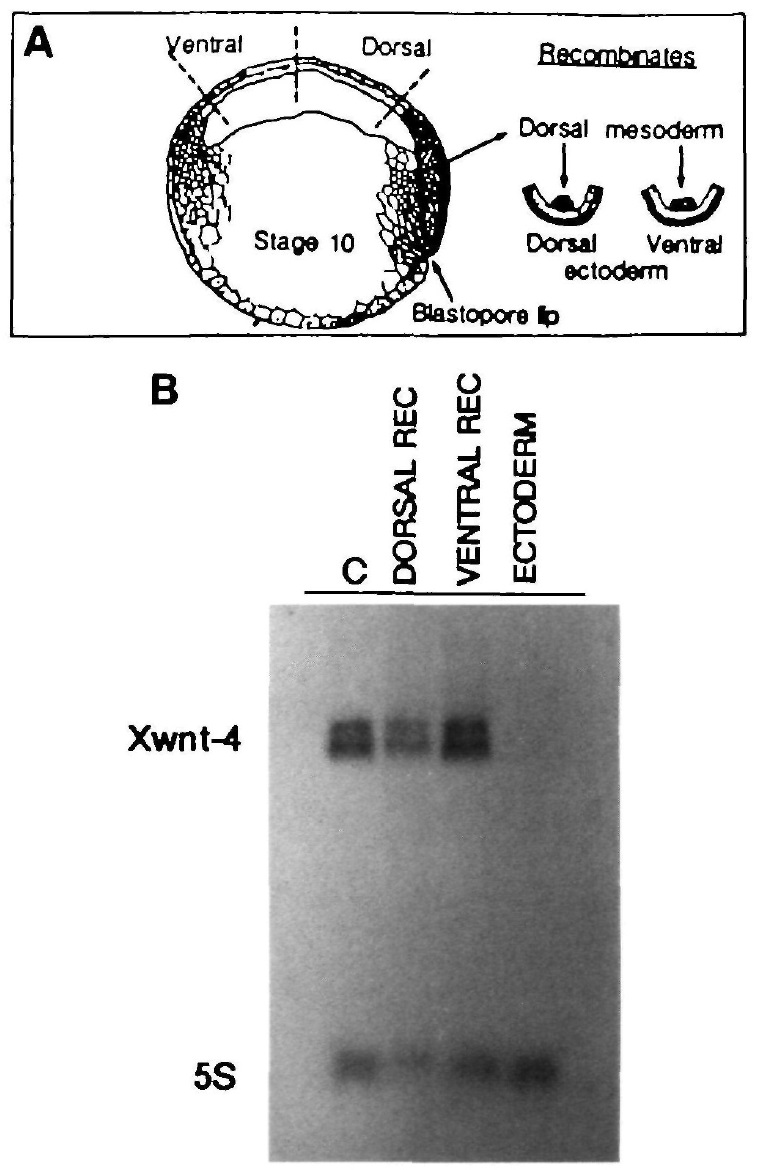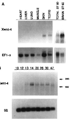 lane. (B) Temporal expression of Xwnt-4 mRNA during
