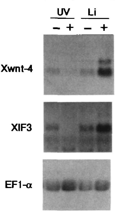 Fig. 3. Xwnt-4 expression in UV-irradiated or lithiumtreated