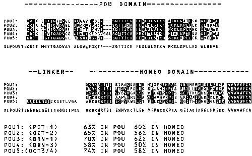 amino acid sequence of XLPOU91 is presented in the sixth line of the figure. Amino acids that are identical to XLPOU91