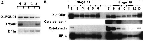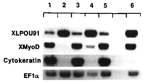 sequentially with eDNA probes of XLPOU91, XMyoD, and EFl a- (see Materials and methods).