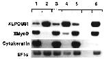 hybridized with the cDNA probes for XLPOU91, XMyoD,
