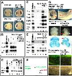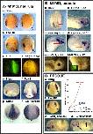 Figure 1. Msx1, Pax3, and Slug Expression in the Presumptive Neural Crest Domain and Msx1 Neural Crest-Inducing Activity In Vivo and in Explants(A) Msx1 (aâd) and Pax3 (aâ²âdâ²) expression in X. laevis at stages 11 (a and aâ²), 13 (b and bâ²), and 16 (câdâ²) costained with Krox20 (dâdâ², indicates third rhombomere). Arrows in aâaâ² indicate the blastopore lips at stage 11. aâaâ², lateral views; bâdâ², dorsal views.(B) Coexpression of Msx1 and Slug by double ISH (Msx1 [blue]; Slug [red]; a; b, dorsal views; aâ²âbâ², transverse sections).(C) Msx1 mRNA was injected in one blastomere at the four cell stage, LacZ is revealed in pink (yellow arrow points at injected side). The embryos were analyzed at early (stage 13, a, c, e, and g) or late (stage 16, b, d, f, and h) neurula stages by ISH for Slug (a and b), Pax3 (c and d), Twist (e and f), and Sox2 (g and h) (red bar, uninjected neural plate half; yellow bar, width of the neural plate on the injected side). Dorsal views.(DâF) RT-PCR analysis of neural, ectoderm and early NC markers: Pax3 and ZicR1 (D); AP-2, Snail, and Slug (E); FoxD3, Pax3, Zic5, and Sox9 (F) after coinjection of Msx1 and Noggin. (D) Lane 4, Noggin (25 pg); lane 5, Msx1 (500 pg); lane 6, Msx1 (500 pg) + Noggin (25pg). (E) Lane 4, Noggin (25 pg); lane 5, Msx1 (100 pg); lane 6, Msx1 (500 pg); lane 7, Msx1 (100 pg) + Noggin (25 pg); lane 8, Msx1 (500 pg) + Noggin (25 pg). (F) Lanes 1â4, as in (E). Lanes 5â7, Msx1 (100â250â500 pg). Lanes 8â10, Noggin (25 pg) + Msx1 mRNA (100â250â500 pg). |