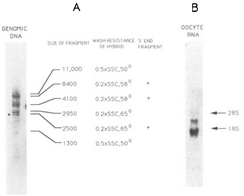 Fig. 1. Blot hybridization of Xenopus genomic DNA and oocyte