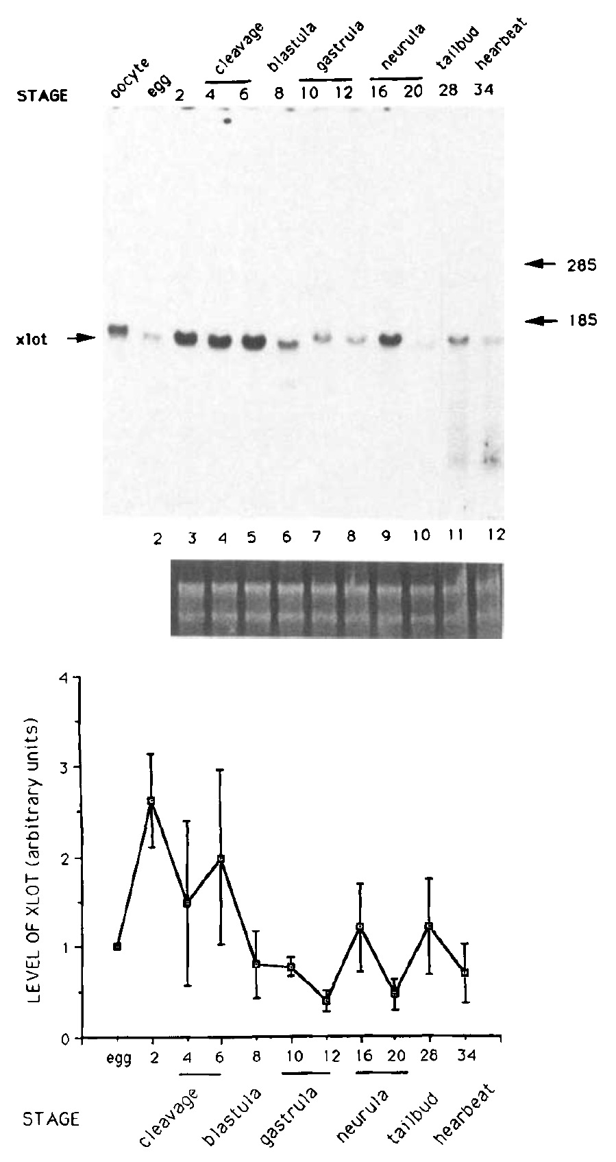 or staged embryo RNA (lunes 3-12) were clectrophoresed, blotted,