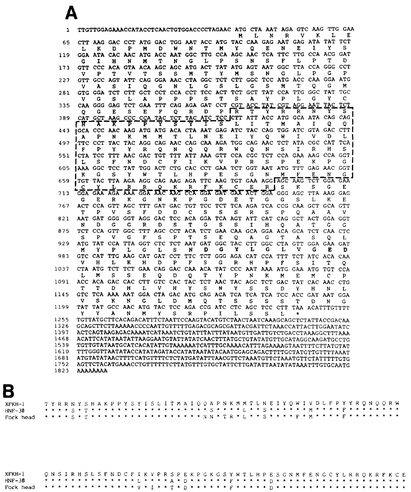 XFKHl to the similar domains in the rat transcription factor HNF-3P (Lai et al. 1991) and Drosophila homeotic gene fkh (Weigel et