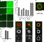 Figure 1. Endogenous and exogenous rho GTPase activity in resting and wounded oocytes. (A) Confocal images of plasma membrane (PM) fluorescence of oocytes injected with a GBD probe, GST, or eGFP, and subsequently injected with water or GTP-γ-S. Bars, 10 μm. (B) Quantification of PM fluorescence signal in oocytes containing the indicated probes and injected with water or GTP-γ-S (n = 30; results are shown as means ± SEM; asterisks indicate P < 0.001). (C) Quantification of background fluorescence intensity in resting oocytes containing the indicated probes and toxin B, C3 exotransferase (C3), or the specified construct, compared with controls containing the probes alone (n ≥ 3; results are shown as means ± SEM; asterisks indicate P < 0.001). (D) Confocal images show lack of GST (green) localization around a wound relative to F-actin array (red). Bar, 10 μm. (E) Confocal images show ringlike localization of GST-rGBD (green) on interior of F-actin array (red). Bar, 10 μm. (F) Confocal images show ringlike colocalization of eGFP-wGBD (green) with F-actin array (red). Bar, 10 μm. (G) Confocal image shows zone of GST-rGBD (red) encircled by that of eGFP-wGBD (green). Bar, 10 μm. |