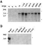 total RNA from each sample was analyzed for expression of different genes, as indicated. In A, hybridization with EF-la, and in B and