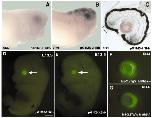 Expression bilaterally in retina of the eye, in olfactory placode ( arrows) and pineal gland (arrowhead).