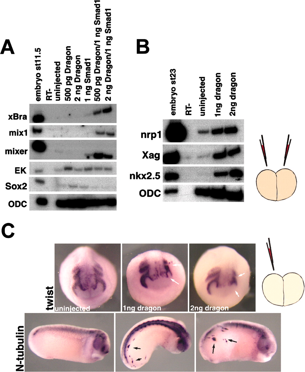 C, Xenopus embryos were injected in