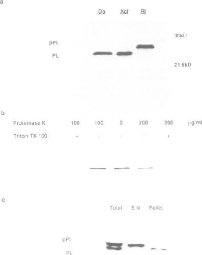 We describe the use of a Xenopus laevis egg extract for the in vitro translation and post translational modification of membrane and secretory proteins. This extract is capable of the translation and segregation into membranes of microgram per millilitre levels of protein from added mRNAs. Signal sequences of segregated proteins are efficiently cleaved and appropriate N-linked glycosylation patterns are produced. The extract also supports the quantitative assembly of murine immunoglobulin heavy and light chains into tetramers, and two events which take place beyond the endoplasmic reticulum, mannose 6 phosphorylation of murine cathepsin D and O-linked glycosylation of coronavirus E1 protein, also occur, but at reduced efficiency. The stability of the membranes allows protease protection studies and quantitative centrifugal fractionation of segregated and unsegregated proteins to be performed. Conditions for the use of stored extract have also been determined.
