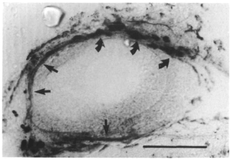 an otocyst in a RA-treated Xenopus. HRP was applied to a