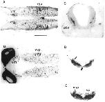 ventral midbrain neurons; vsp, vestibulospinal neurons; rsp, reticulospinal neurons; oto, otocyst. Scale bar is 100 nm. |