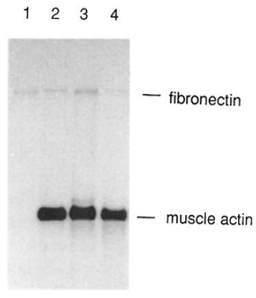 with a mixture of “P-labeled fibronectin and muscle actin antisense