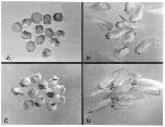 sectioned, and examined with darkfield (A, C, and E) and fluorescence optics (B, D, and F). (A), (B), (E), and (F) are transverse sections; (C) and
