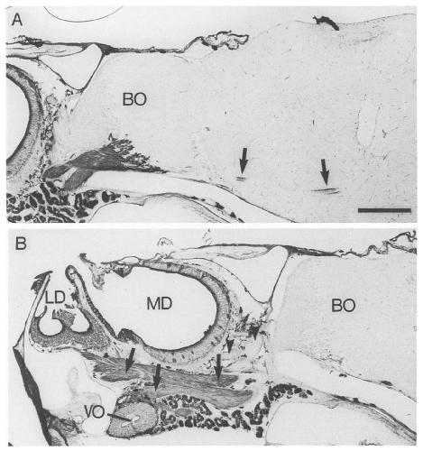 Soybean agglutinin (SBA) is known to selectively label a portion of neurons in amphibian and mammalian primary olfactory systems. Hitherto, no other distinctive features have been found to correlate with the two neuronal populations. Investigating SBA-HRP binding in olfactory mucosa and CNS of Xenopus, we noted that labelled and unlabelled structures can readily be assigned to different olfactory subsystems. The SBA negative one is utilized to detect air-borne odors, whereas major SBA-positive structures serve a role in the perception of water dissolved molecules. Some labelled fibers by-pass the olfactory bulb, traverse the telencephalon and innervate prosencephalic structures. They are considered to be aberrant olfactory nerve fibers, rather than being part of the terminal nerve.