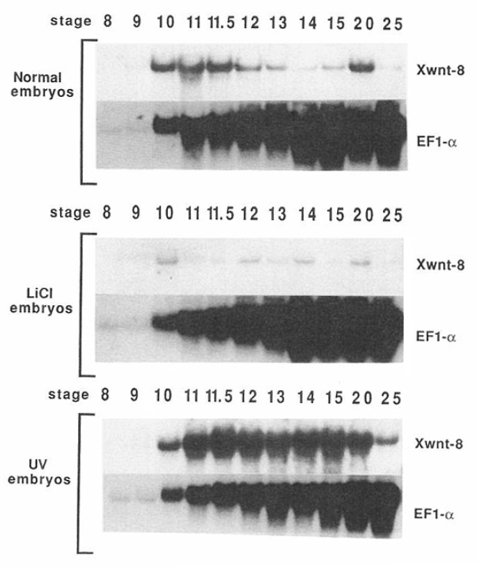 of Xwnt-8 encoding mRNA at the 4-cell stage. Representative tailbud