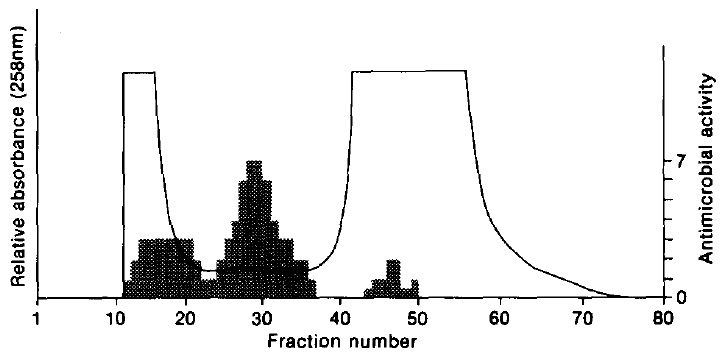 FIG. 1. Antimicrobial peptide isolation. P-30 gel filtration