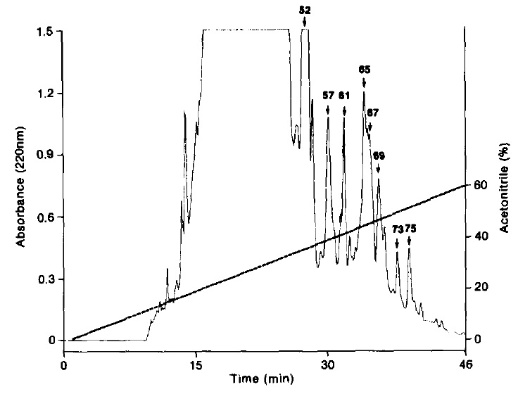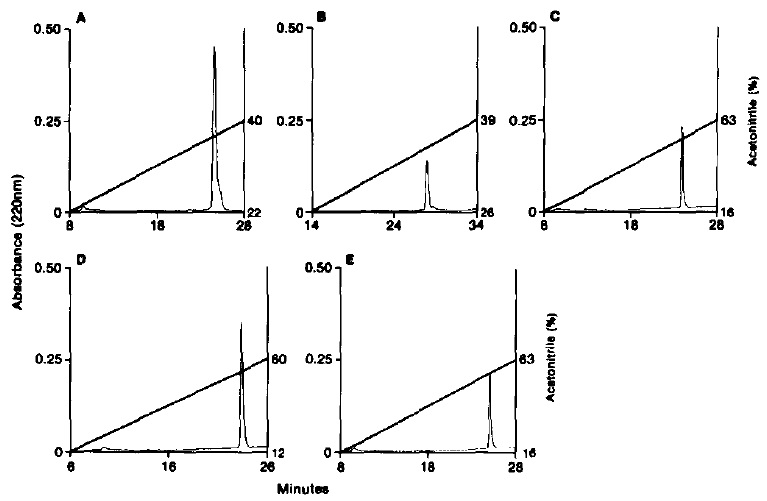 FIG. 5. Reversed-phase HPLC chromatograms of peptides