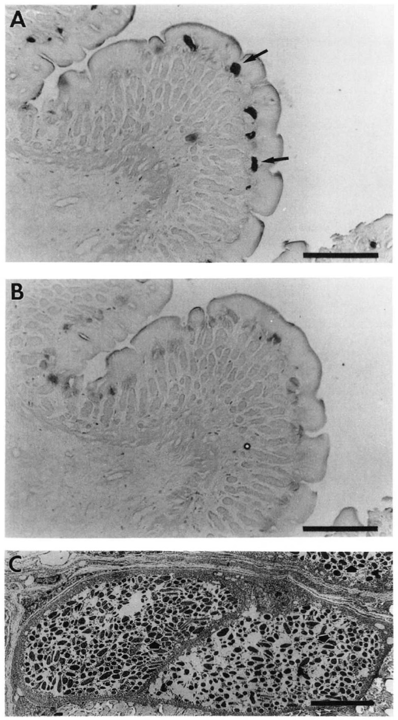 depleted sera (1:5000 dilution); bur, 100 pm. C, electron micrograph