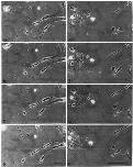 cell b. (C) The growth cone of fibre 1 has collapsed 8min
