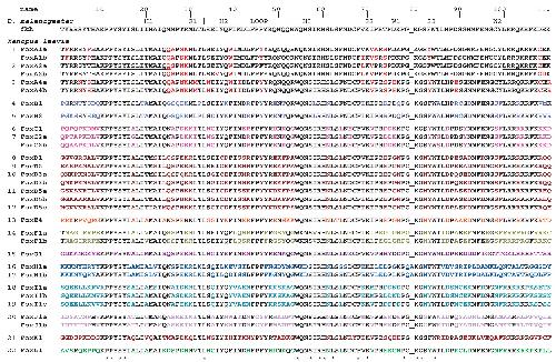 Genes referenced: foxa1 foxa2 foxa4 foxb1 foxb2 foxc1 foxc2 foxd1 foxd2 foxd3 foxd4l1 foxe1 foxe3 foxg1 foxh1 foxh1.2 foxi1 foxi3 foxj1 foxj1.2 foxk2 foxl1