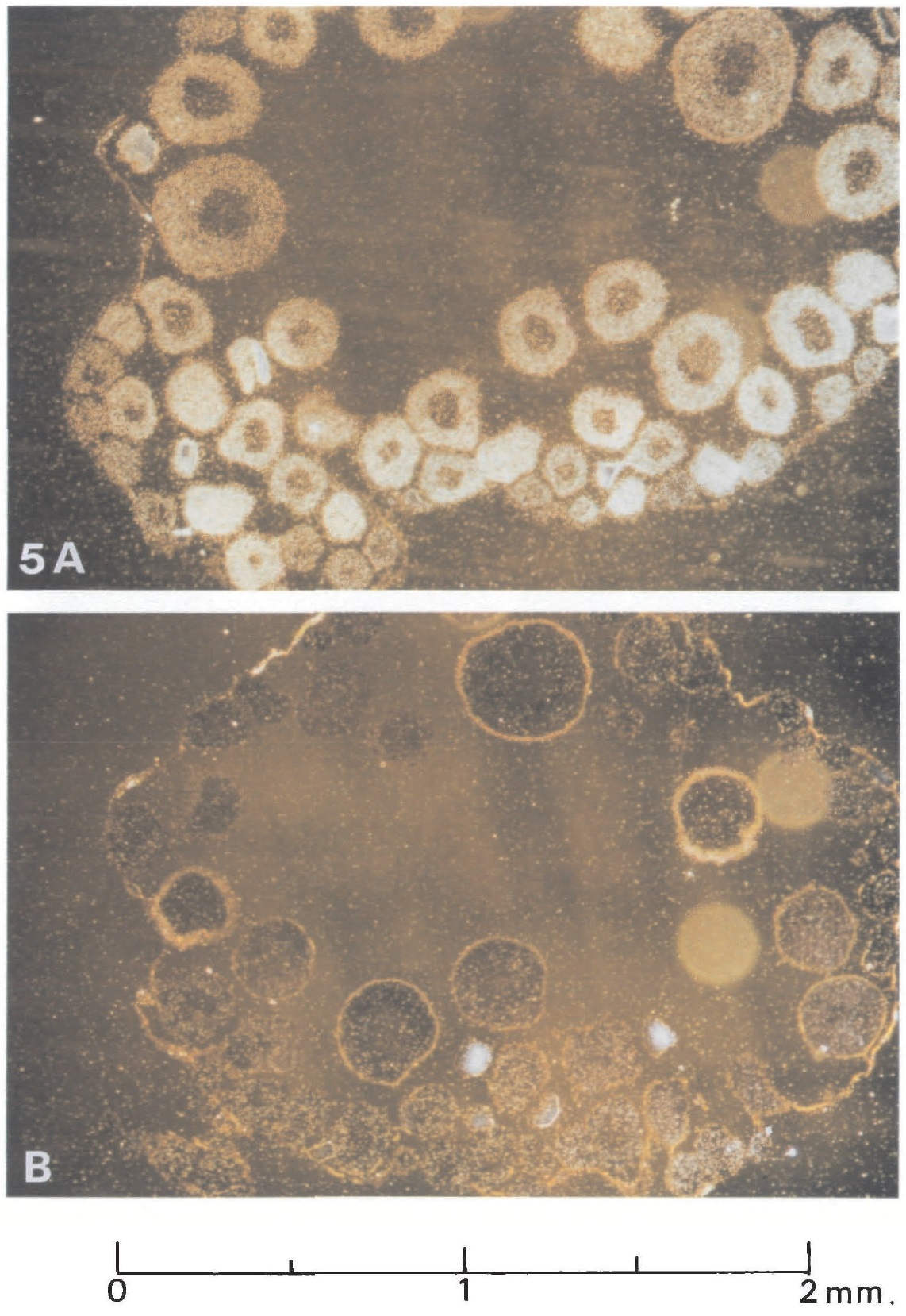 Fig. 5. Localization of TR mRNA in stages 1 and 2 oocytes visualized in sections