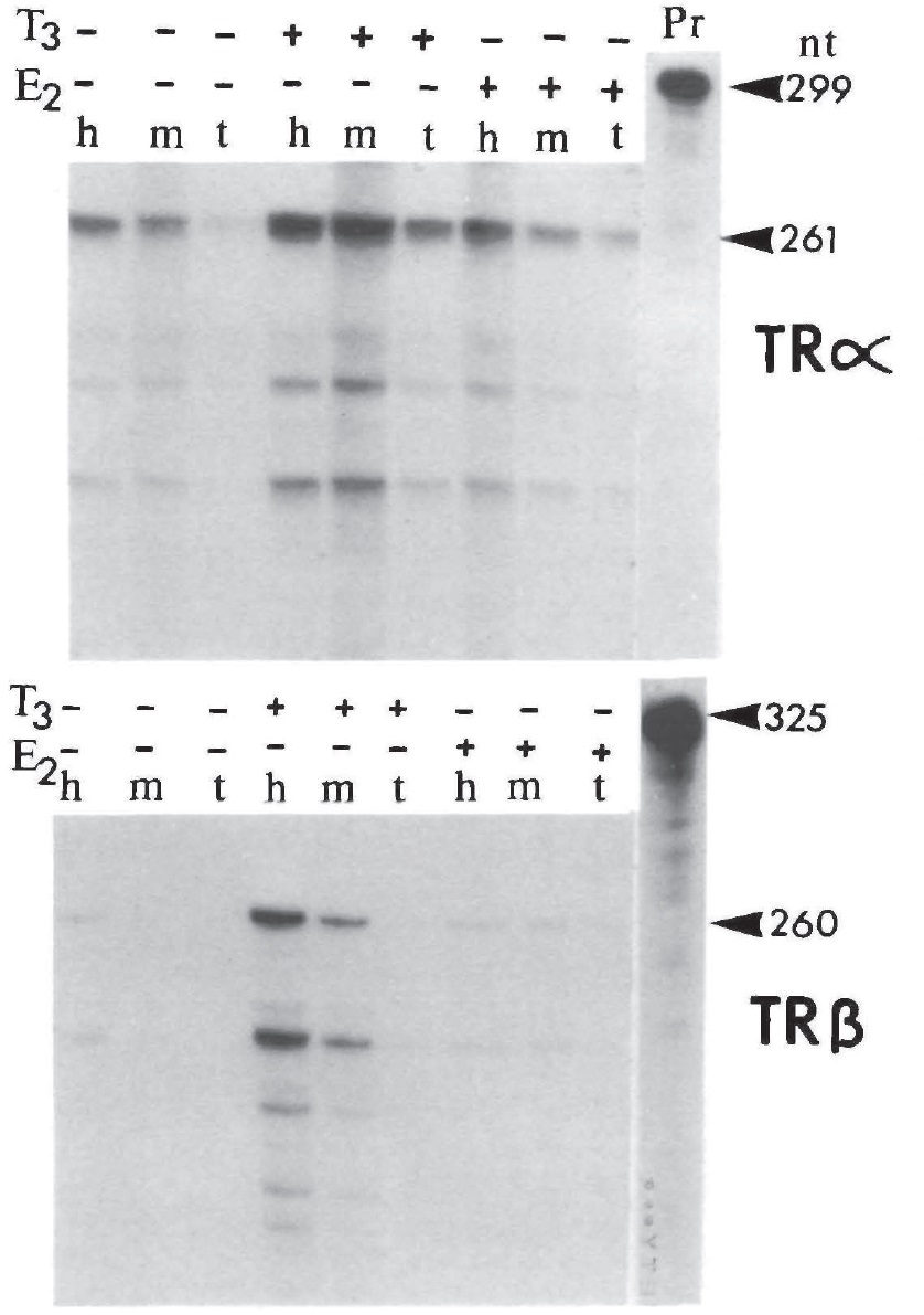 Fig. 6. Preferential autoinduction of TRb mRNA by T3 in