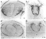 CNS including a compressed region with intense labelling which corresponds to the hindbrain (bracket). Fewer segmental