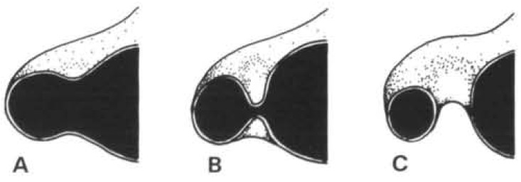 semicircular canal. (A) A pair of axial protrusions (arrows)