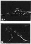 Fig. 11. T.E.M. sections showing (A) a portion of the squamous epithelium near the base of an axial protrusion, and (B) a