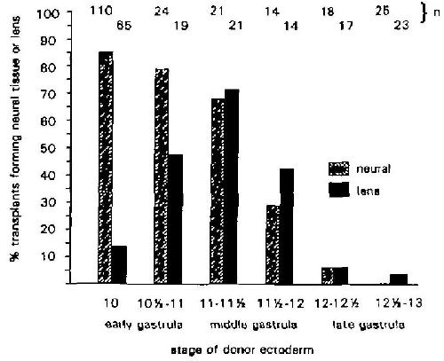 that formed lens or neural tissue at each of the stages
