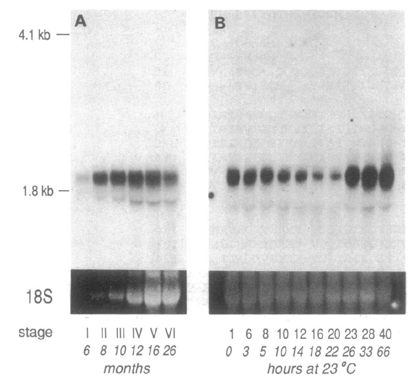 FIG. 2. Northern blot analyses of developmental expression of