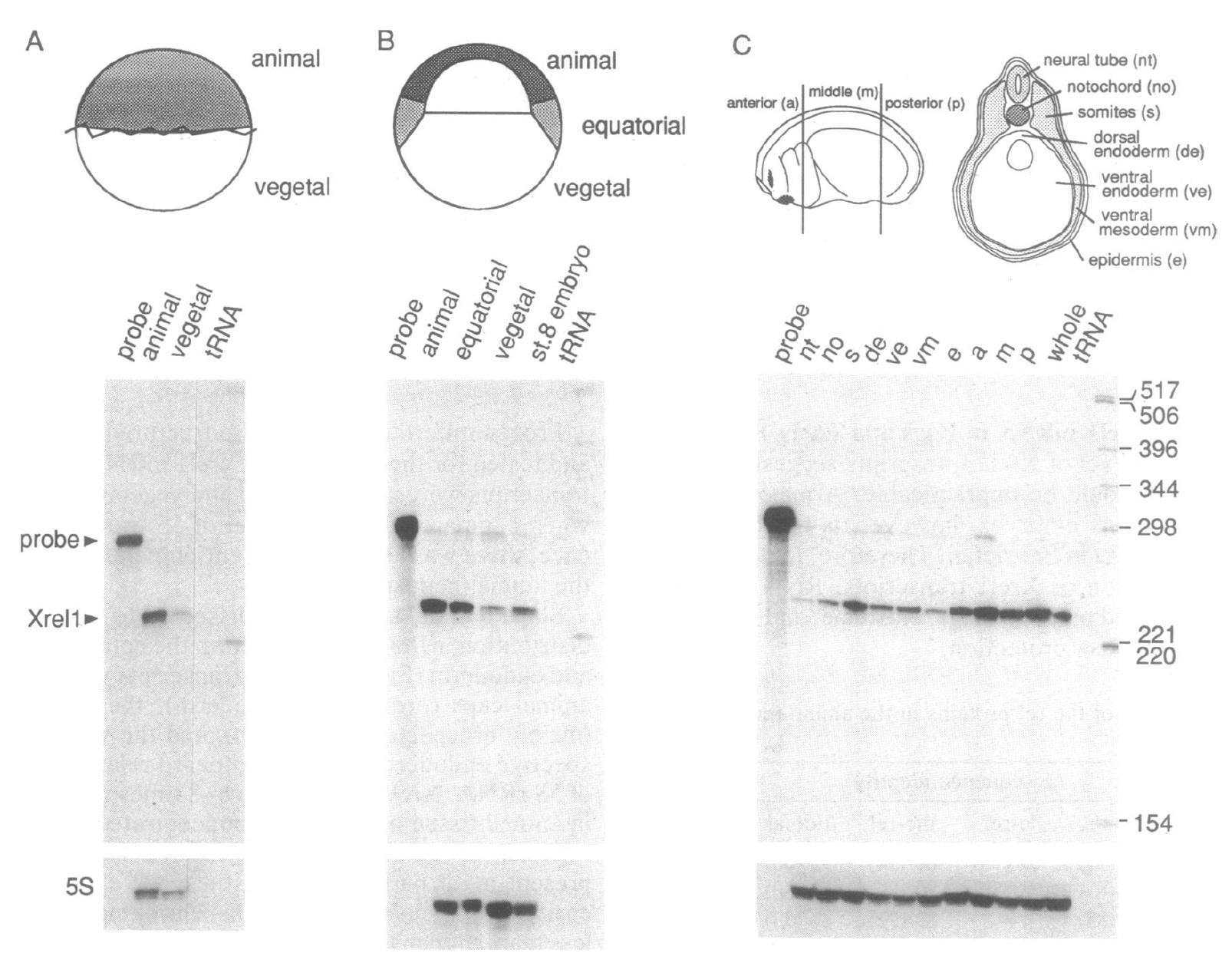 very little Xrell RNA, did not reproducibly have a lower concentration than in the other tissues. Yeast tRNA (5 Ag) was used as a hybridization control