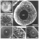 diameter), the GV is asymmetrically located toward the animal pole (A). A fibrous array extends toward the animal pole (A) from the brightly