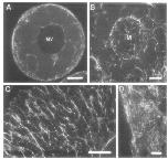 microtubules, organized into radially oriented bundles, are apparent in the animal cortex of this stage VI oocyte (60X obj; bar is 25 Fm). (D)