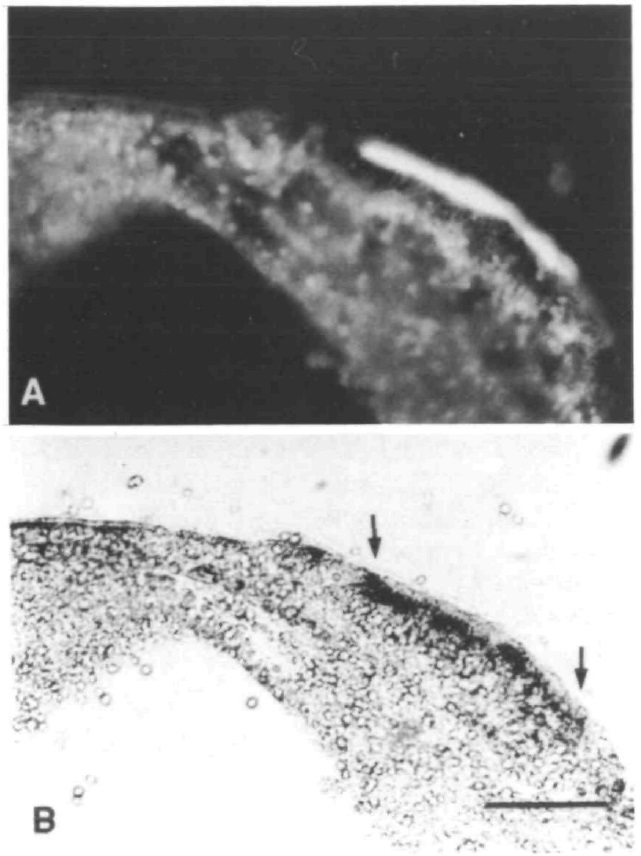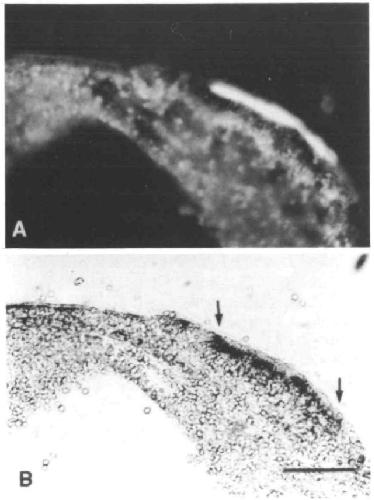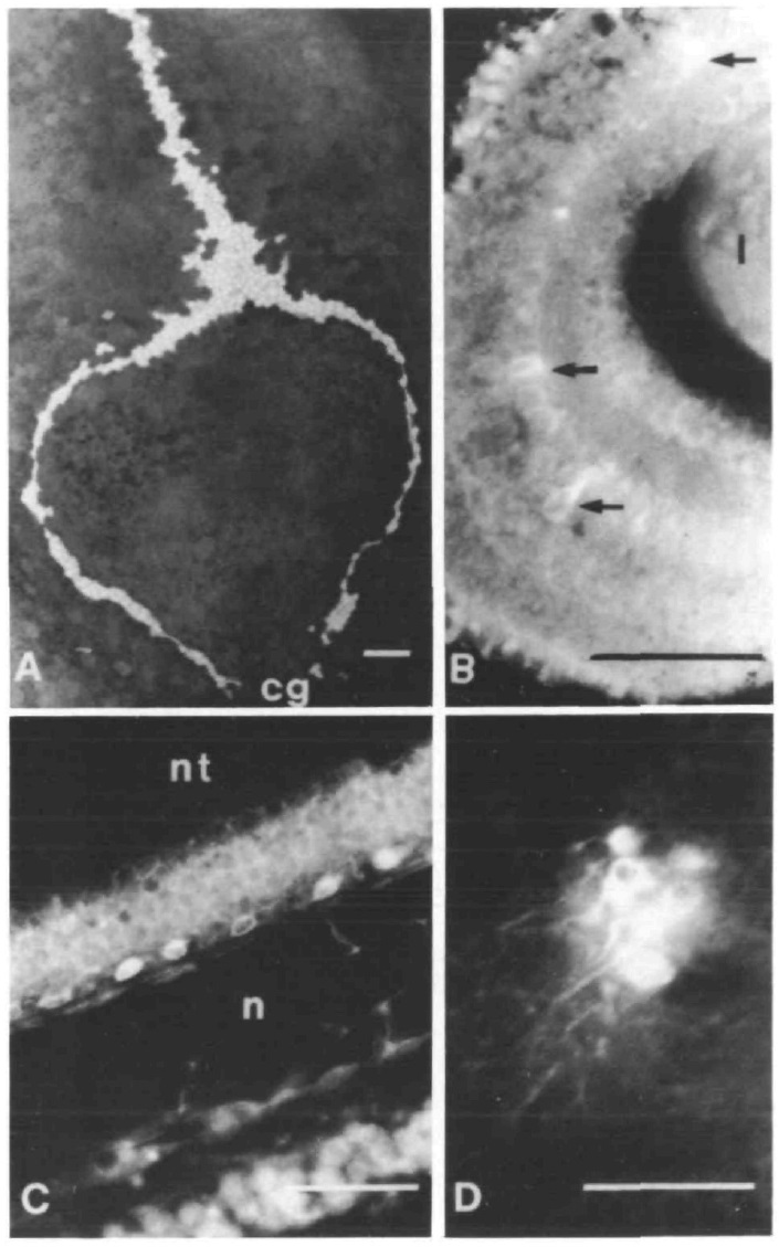 deep cells. Scale bar=100^m. (B) An example of a TH-positive explant removed from the anterior neural folds at stage