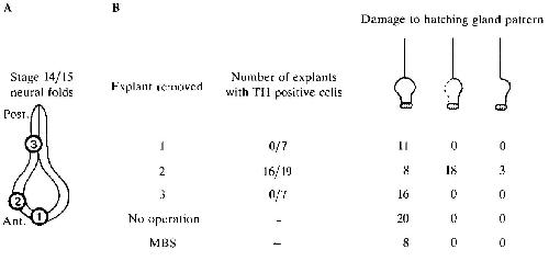 and embryo were cultured to stage 28. Explants were examined for hatching gland cells and embryos were assayed for