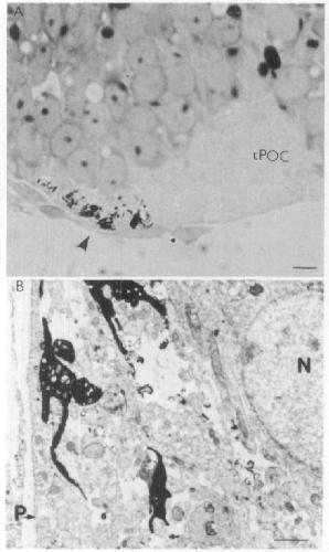 direction. The stained axons and cells of the tPOC that lie