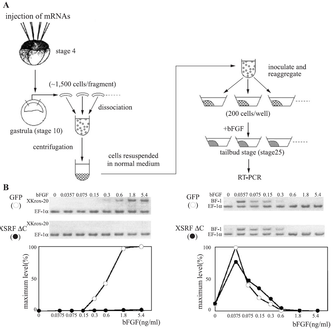 reaggregation by brief centrifugation, cells were cultured in the presence of increasing concentrations of bFGF until control embryos reached stage 23. The