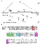 genomic clone isolated (an uppermost trace). A part of the clone that includes two exons and an intron is zoomed and compared with a corresponding part of
