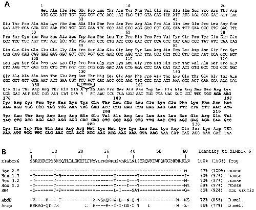 Fig. 2. Sequence of the XlHbox 6 homeodomain protein. (A) The nucleotide and deduced amino acid sequence of the