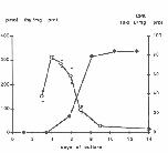 Fig.15. Intracellular urokinase content as a function of in vitro myo- genesis. UK content was determined as explained In Fig, 14. UK was present In cultures at a low level during the proliferating stage and then rose strikingly at day 8 when mitoses had diminished and cells had begun to fuse.