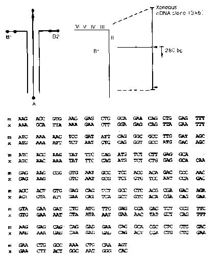 shows the cloned 3-kb Xenopus cDNA fragment, its position