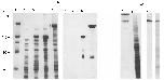 (lanes 2-5) and immunoblot (lanes 6-9), showing total protein from induced bacteria containing the unfused trpE gene (lanes 2, 6),