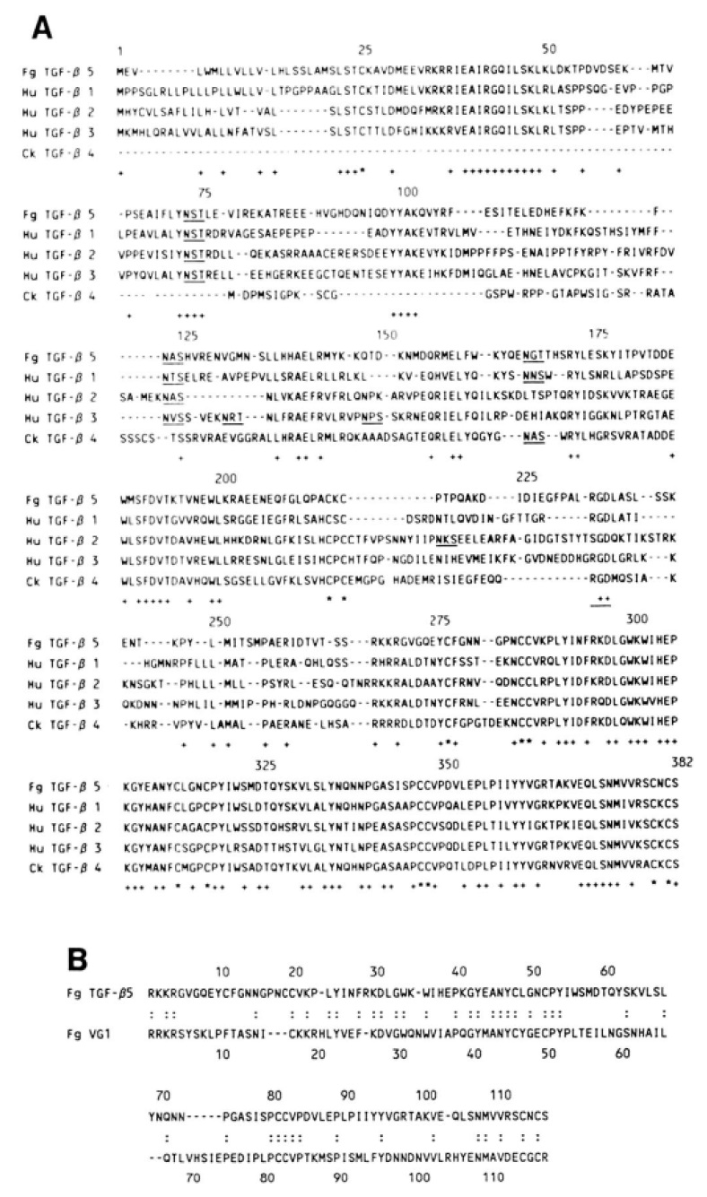 FIN:. 2. A, comparison of the amino acid sequences of TGF-ps l-