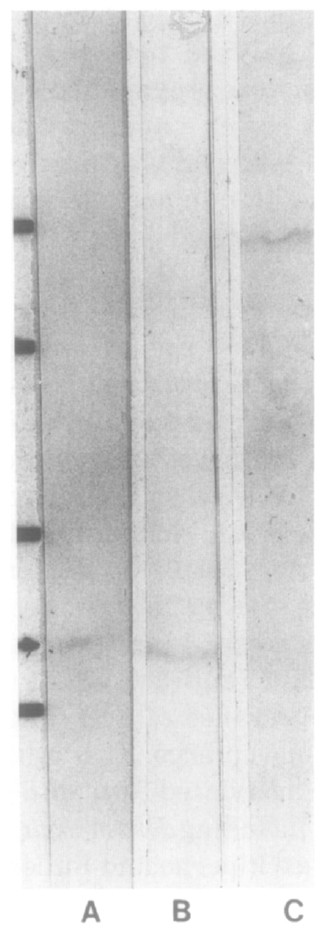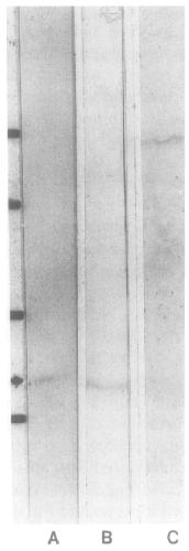 reacted with a single band of approximately 175 kDa (lane C). The