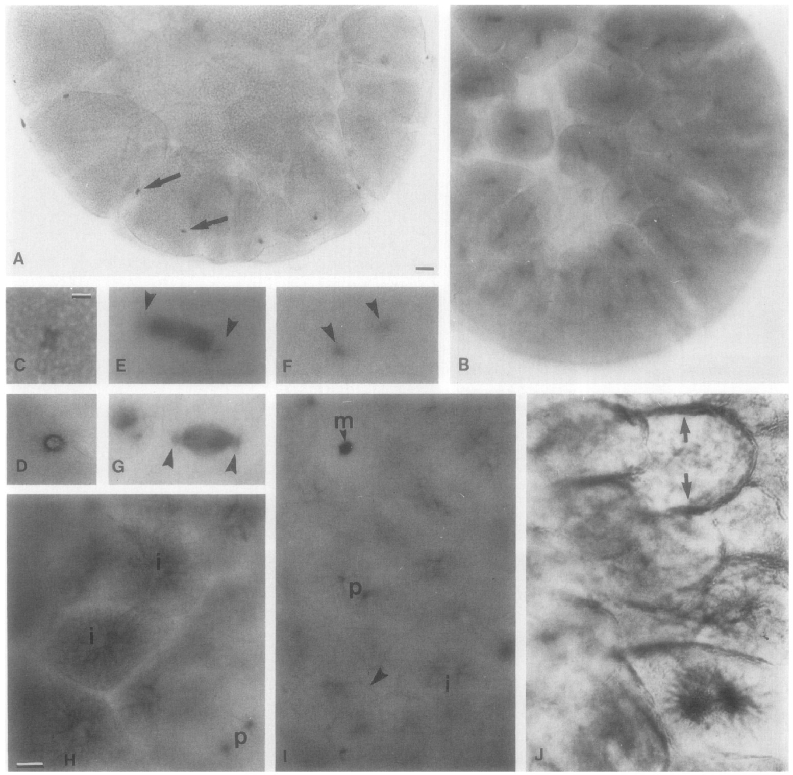 array of microtubules could be seen in blastulas using anti-P-tubulin antibodies (H, i marks interphase cells, p marks prophase cell). During