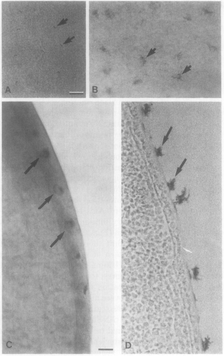the epidermis (arrows). Bar in A marks 50 pm; bar in C marks 20 ym